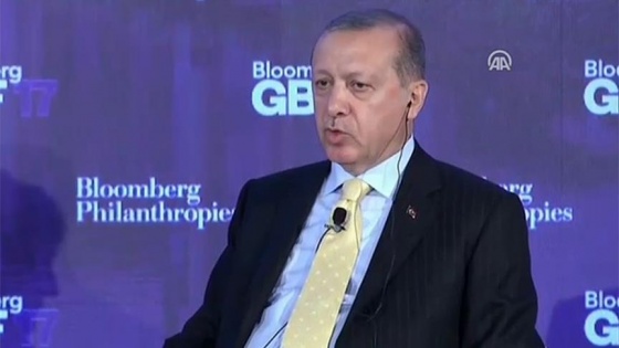 Cumhurbaşkanı Recep Tayyip Erdoğan, New York Plaza Otel'de "Bloomberg Küresel İş Forumu"nda konuşuyor.