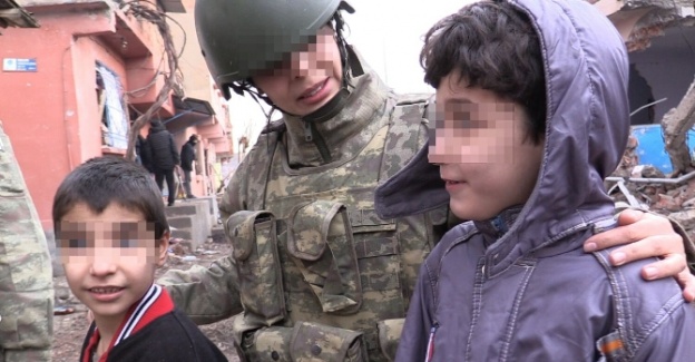 Diyarbakır’ın Sur ilçesinde 4 kişilik bir aile, 47 gün sonra polis ve askerin ortak operasyonuyla rehin olmaktan kurtarıldı. Teröristlerin bölgeden çıkmasına izin vermediği ailenin güvenli bölgeye sevk edildiği operasyonda Türk Silahlı Kuvvetleri bünyesinde görev yapan bir kadın astsubay da yer aldı. Terör mağduru minik aile bireyleriyle yakından ilgilenen kadın komutan, çocuklarla yol boyunca sohbet etti. Şefkat elini miniklerin omuzlarına atan astsubay, teröristlerin yakması sonucu kullanılamaz hale gelen evlerin arasında sevgi mesajı verdi.