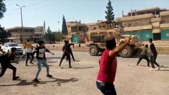 Terör örgütü destekçileri, daha önce de Türkiye’nin askeri harekatları nedeniyle Suriye’nin kuzeyinden çekilen bazı ABD askeri unsurlarını taşlamış ve kendilerini Türkiye’ye karşı savunmasız bırakmakla suçlamıştı.