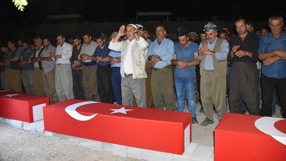 Şırnak'ın Uludere ilçesinde PKK'lı teröristlerin yol yapımında çalışanlara yönelik düzenlediği saldırıda hayatını kaybeden 3 işçinin cenazeleri toprağa verildi.