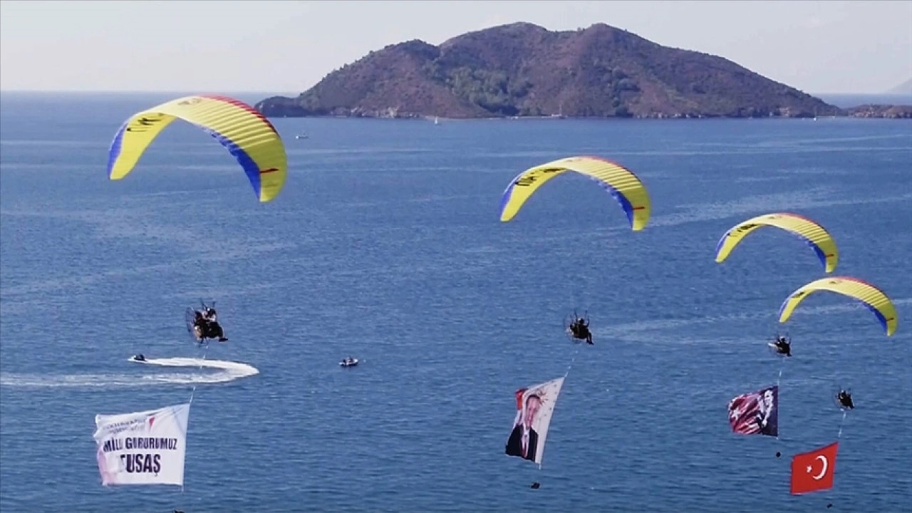 İlçede düzenlenen 24. Uluslararası Ölüdeniz Hava Oyunları Festivali kapsamında gösteri yapan THK ekibi, terör saldırısının yapıldığı Türk Havacılık ve Uzay Sanayii Anonim Şirketine (TUSAŞ) destek için motorlu yamaç paraşütüyle uçtu.