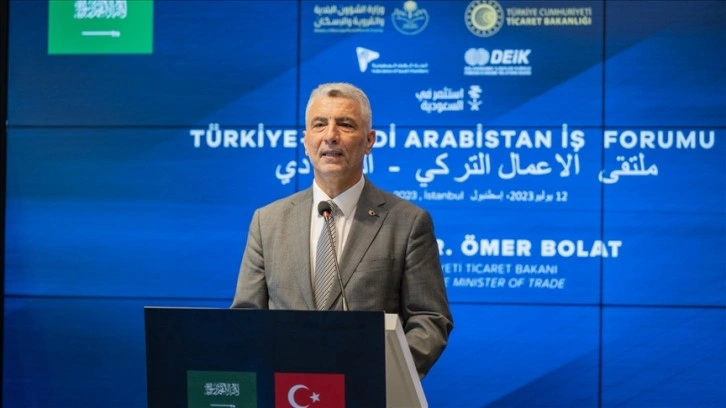 Ticaret Bakanı Ömer Bolat, Türkiye ile Suudi Arabistan arasındaki dış ticaret hacminin bu yılın ilk yarısında 3,4 milyar dolara ulaştığını belirterek, "Hedefimiz, karşılıklı ticareti kısa vadede 10 milyar dolar, uzun vadede ise 30 milyar dolar seviyesine çıkarmaktır." dedi.