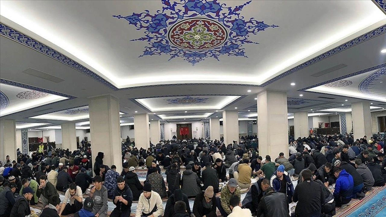 Cemaat, akşam ezanının okunmasının ardından vakit namazını eda etti, ardından caminin alt katında kurulan yer sofralarında iftarını yaptı.