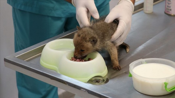 Veterinerler tarafından yapılan muayenede sağlıklı oldukları belirlenen tilki yavrularına görevliler biberonla sıvı ve yaş mama verdi.