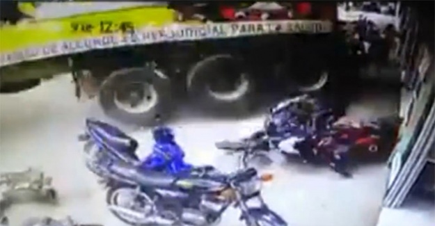 Kolombiya’da kontrolü yitirilen TIR, motosiklet satışı yapılan iş yerinin bahçesine girdi. TIR’ın gelişini fark eden insanlar kaçarken, TIR motosikletleri adeta biçti. Feci kazada çok sayıda motosiklet hurda olurken, can kaybı ve yaralanma yaşanmaması tek teselli kaynağı oldu.