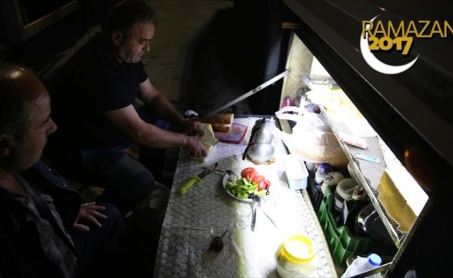EDİRNE (AA) - Kapıkule Sınır Kapısı'nda araç kuyruğunda bekleyen tır şoförleri, evlerinden uzakta da olsa birlikte sahur yapmanın mutluluğunu yaşıyor.