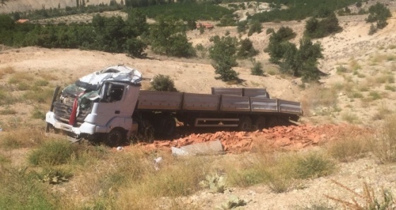 Malatya-Sivas Karayolu üzerinde Cebiş Tüneli yakınlarında yaşanan kazada sürücü ve plakası öğrenilemeyen tuğla yüklü tır bariyerleri biçerek şarampole yuvarlandı. Çevredeki diğer sürücülerin durumu sağlık ekiplerine bildirmesi ile olay yerine gelen 112 sağlık görevlileri ağır yaralanan sürücüyü hastaneye kaldırdı.