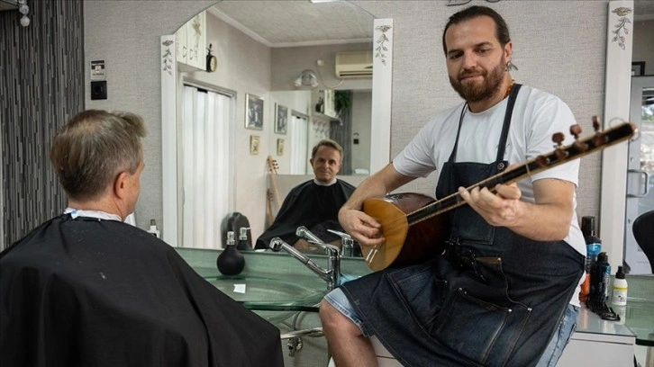 Bilgili, saz çalıp türkü söyleyerek tıraş edildiğini duyup şehir dışında gelen müşterileri de olduğunu belirterek, şunları kaydetti: