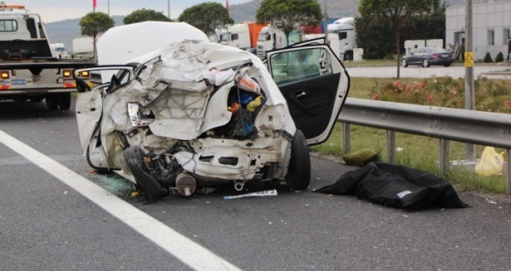 Kaza, sabah saatlerinde TEM otoyolu Elmalık mevkiinde meydana geldi. Edinilen bilgiye göre, İsa E. idaresindeki 16 KYL 40 plakalı kereste yüklü tır İstanbul istikametine seyir halindeyken, aynı yönde giden Baykurt G. yönetimindeki 34 TG 9873 plakalı otomobile arkadan çaptı. Kazada, kullanılamaz hale gelen otomobilin arka koltuğunda bulunan Fatma Özçelik araçta sıkışarak can verdi. Otomobilde bulunan sürücü ile Birgül ve Neşet G. ise kazadan yaralı olarak kurtuldu.