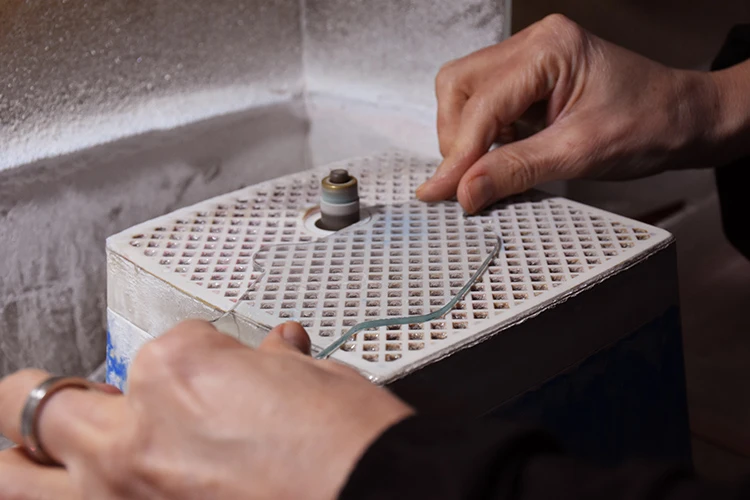 Sonrasında gölgelendirme tekniğiyle detaylar çiziliyor. Son olarak, füzyon fırınlarımızda ısıyla birleştirilerek son haline geliyor."