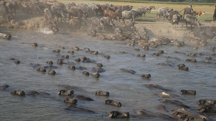 Çiftlik köyünden sonra Şatroba köyünde de manda yetiştiriciliğinin yaygın olduğunu dile getiren Keser, buradaki hayvanların Kaz Gölü'nde bulunan merada otlatıldığını belirtti.