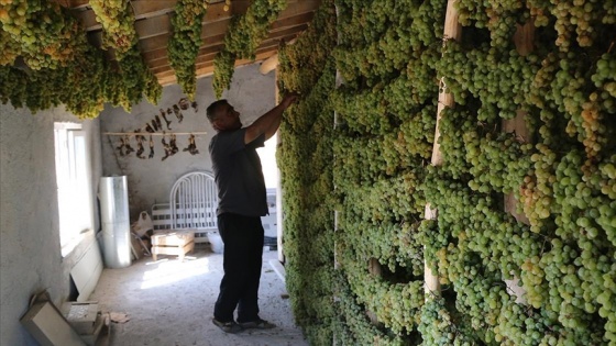 Üzümler, kurutulmak üzere çiftçilerin kendi imkanlarıyla hazırladığı gölgelik alanlarda veya evlerin tavan aralarına gerilen tellerin üzerine salkımlar halinde asılarak kurumaya bırakılıyor.