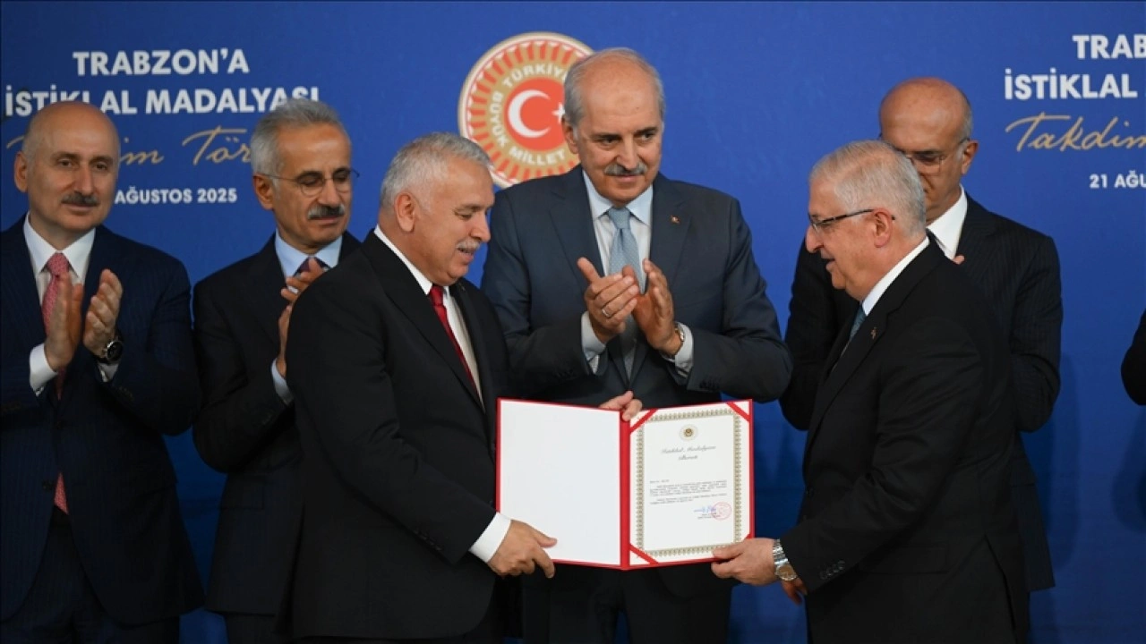 TBMM tarafından 1924 yılında İstiklal Madalyası'yla ödüllendirilen Trabzon'a verilecek "İstiklal Madalyası" için Meclis Şeref Holü'nde tören düzenlendi.
