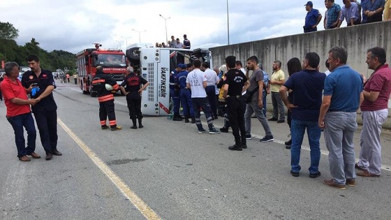 Alınan bilgiye göre, Trabzon-Vakfıkebir arasında sefer yapan 61 S 3508 plakalı yolcu midibüsü, Yalıköy mevkisinde refüje çarparak devrildi.