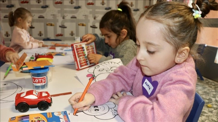 Kahramanmaraş merkezli, 11 ili etkileyen depremlerin ardından Valilik koordinesinde Trabzon'a getirilen depremzedelerin 3-5 yaş arası okul öncesi çocukları, kaldıkları Kredi ve Yurtlar Kurumu (KYK) yurtlarında oluşturulan ana sınıflarında akranlarıyla bir araya gelerek moral buluyor.