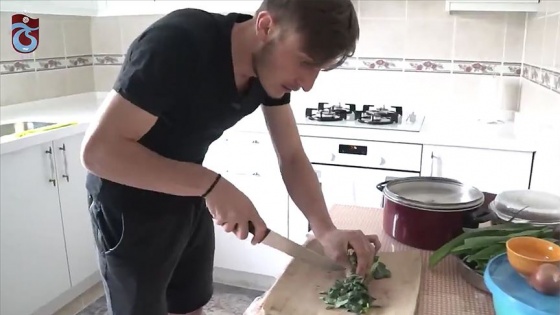 Trabzonsporlu Serkan Asan'ın Akçaabat ilçesindeki evinde yemek yaparken çekilen görüntülerinin yer aldığı video, kulübün sosyal medya hesaplarında yayımlandı.