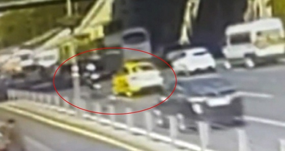Kazada yaralanan motosiklet sürücüsü hastaneye kaldırılırken, yaşanan kavga anı güvenik kameraları tarafından kaydedildi. Görüntülerde, motosiklet kullanıcısının akıcı trafikte ilerlediği görülüyor. Bir süre sonra ticari taksinin yanına gelen motorcu uzanıp eliyle aracın aynasını kırıyor. Daha sonrada ticari taksi sürücüsünü motosiklete çarparak, sürücüyü bariyerlere fırlatıyor. Taksi şoförü ardından olay yerinden uzaklaşıyor.