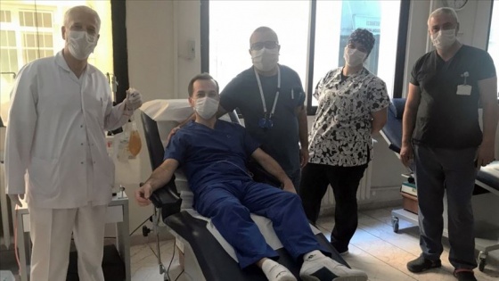 "Kovid-19 tedavisi tamamlanan Trakya Üniversitesi Tıp Fakültesi’nde görevli hekim-öğretim üyesi, hastanenin Terapötik Aferez Ünitesi'ne gönüllü olarak başvurarak 'immün plazma' bağışında bulundu. Tanı ve tedavinin ardından test sonuçları negatif çıkmış ve klinik tam iyileşmesinin üzerinden en az 14 gün geçmiş bağışçıyla yapılan ilk 'immün plazma' toplama işlemi, hastanenin Transfüzyon Merkezi Sorumlu Hekimi Dr. Öğretim Üyesi Onur Kırkızlar'ın yönetiminde, Teknik Sorumlu Sağlık Teknisyeni Atacan Keskin, Sağlık Teknisyeni Mustafa Konak, Sağlık Teknisyeni İnci İşbilen ve Hemşire Saniye Yürük tarafından gerçekleştirildi."