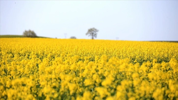 Edirne ve Tekirdağ'da da çiçek açan kanola tarlaları sarıya boyadı.