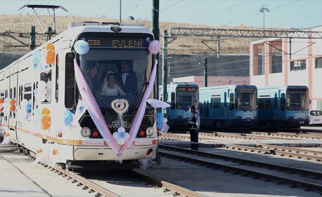 GAZİANTEP(AA) - Gaziantep Büyükşehir Belediyesinde görevli vatman çiftin nikahı rayların üzerinde kıyıldı.