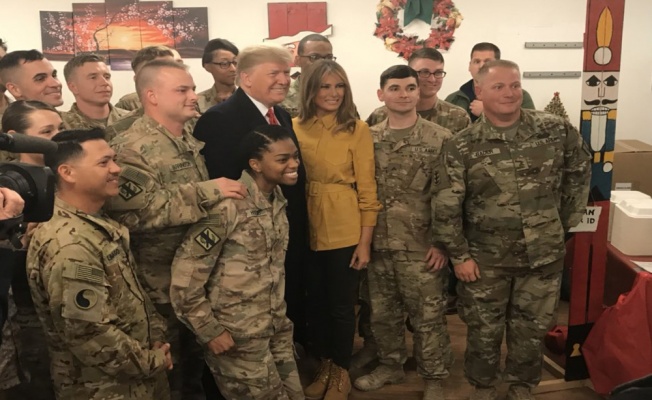 ABD Başkanı Donald Trump, yılbaşı öncesi Irak’ın Anbar ilindeki Ayn El Esad hava üssüne sürpriz bir ziyaret gerçekleştirdi. Amerikan askerleriyle bir araya gelen Trump, eşi Melania Trump ile birlikte hatıra fotoğraf çektirdi.