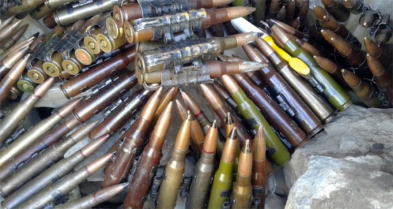 Ele geçirilen mühimmatın ise; 3 adet AK-47 kalaşnikof tüfek, 20 adet 60 mm havan mühimmatı, 8 adet RPG 7 mühimmatı, 8 adet RPG 7 sevk fişeği, 60 mm havan ve çatal ayağı, 2000 adet AK-47 fişeği, 800 adet PKMS makinalı tüfek fişeği, yarım çuval Doçka fişeği, 36 adet el bombası, 50 adet AK-47 şarjörü, 10 kg amonyum nitrat, 3 bidon TNT, 300m kablo, 1 tane 4 kw jeneratör, 2 tane 1 kw jeneratör, 1 tane bosch hilti, 13 tane akü, 3 regülatör, 1 tane LCD TV, 2 tane DVD oynatıcı, 200 civarı kitap, 1 fırın, 20 karton sigara, 4 gaz lambası, fotoğraf makinası, 6 adet büyük hilti ucu, çok miktarda kıyafet ve gıda malzemesinden oluştuğu açıklandı.