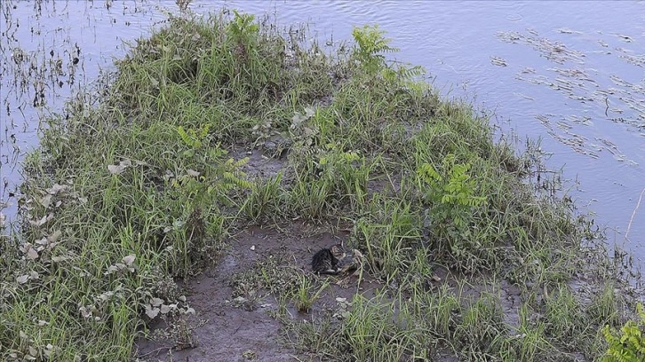 Tunca Nehri'nin ortasındaki adacıkta bir kedi yavrusunun mahsur kaldığını görenler, itfaiye ve AFAD ekiplerine bilgi verdi.
