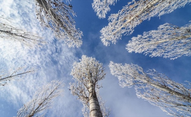 Kırağıyla eşsiz bir görünüme kavuşan ağaç ve bitkiler, kartpostallık görüntüler oluşturdu.
