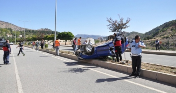 Edinilen bilgiye göre, Hüseyin İlter yönetimindeki 42 BP 022 plakalı özel araç, Tunceli-Elazığ karayolu Kanoğlu mevkiinde kontrolden çıkarak önce kaldırıma çarptı ardından da takla atarak orta refüje düştü. Kazada, sürücü Hüseyin İlter'in yanı sıra araçta bulunan Kumru ve Besi İlter yaralandı. Vatandaşların haber vermesi üzerine olay yerine giden 112 ekipleri, Tunceli Belediyesi İtfaiye ekibi ve polislerle birlikte yaralıları sıkıştıkları araçtan çıkararak, ambulanslarla Tunceli Devlet Hastanesi'ne kaldırdı. Hastanede tedavileri devam eden yaralıların sağlık durumlarının iyi olduğu öğrenildi.