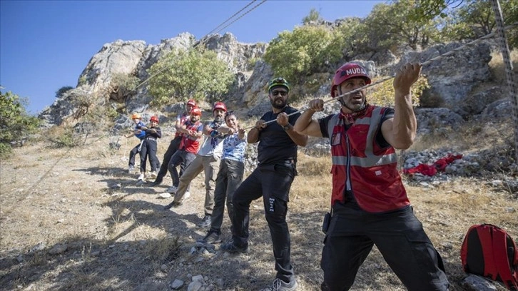 Kurdukları çadırlarda üç gün geçiren gönüllüler, gerekli bilgilendirmeler sonrası eğitmenleri ve ekip amirleri gözetiminde dağlık araziye tırmandı.