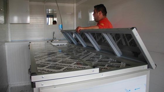 Sivas'ta faaliyet gösteren bir firmanın ürettiği, şoklama ve vakumlama teknolojisiyle cenazeyi uzun süre saklayabilen, elektriğin olmadığı yerlerde jeneratör ve tüplü şofbenle çalışabilen paslanmaz mobil morg üniteleri yoğun talep görüyor.