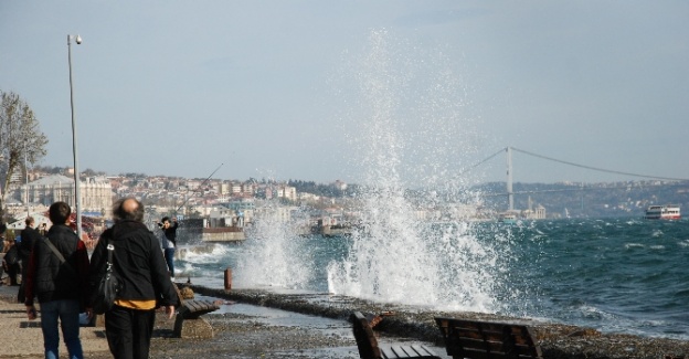 İstanbul’u etkisi altına alan lodos Karaköy sahilinde dev dalgaların oluşmasına neden oldu. İnsan boyunu aşan dalgaları gören turistler telefonlarına sarılarak bol bol fotoğraf çektirdi.