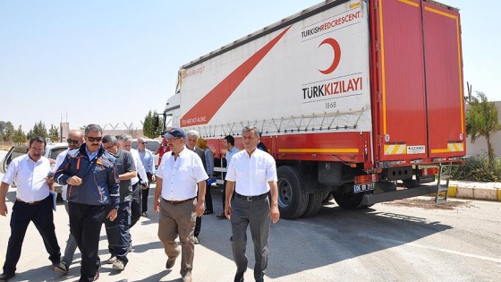 Bölgede incelemelerde bulunan AFAD Başkanı Mehmet Halis Bilden, Gaziantep Vali yardımcısı Nursal Çakırığlu ve Karkamış Kaymakamı Yusuf Osman Diktaş Kızılay yardım konvoyunu karşılayarak yetkililerden yapılan çalışmalar hakkında bilgi aldı.