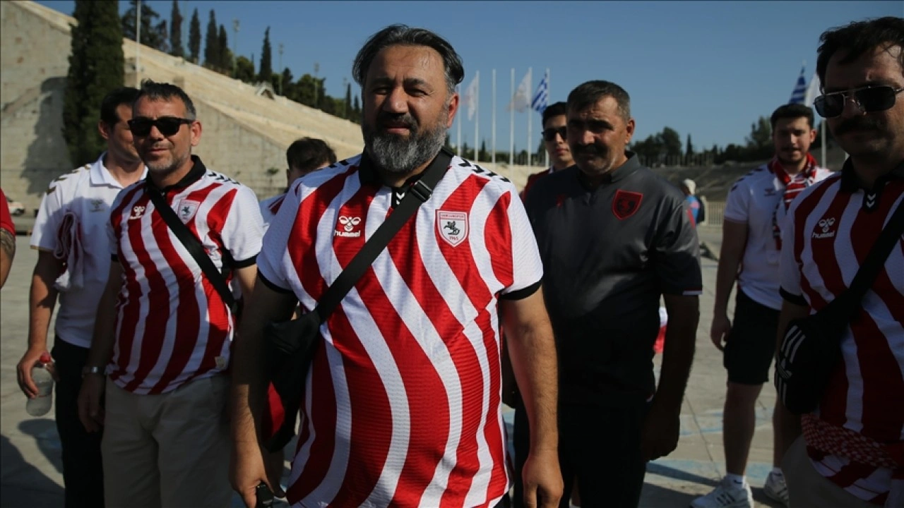 Karayoluyla 10 bin 300 kilometre yol katederek Atina'ya ulaşan ve basın mensuplarıyla bir araya gelen Tamtürk, daha sonra Panathinaikos-Samsunspor maçında tribündeki yerini almak için Atina Olimpiyat Stadyumu'na hareket etti.