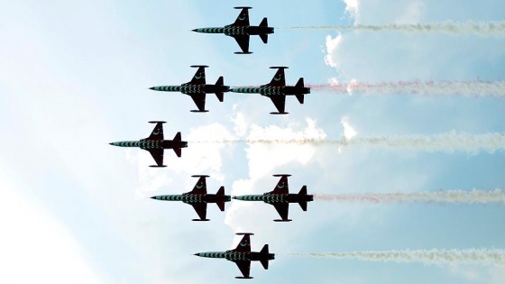 Dünyada 8 süpersonik uçakla gösteri yapan tek akrobasi timi olan Türk Yıldızları, manevralarıyla izleyenleri adeta büyüledi.
