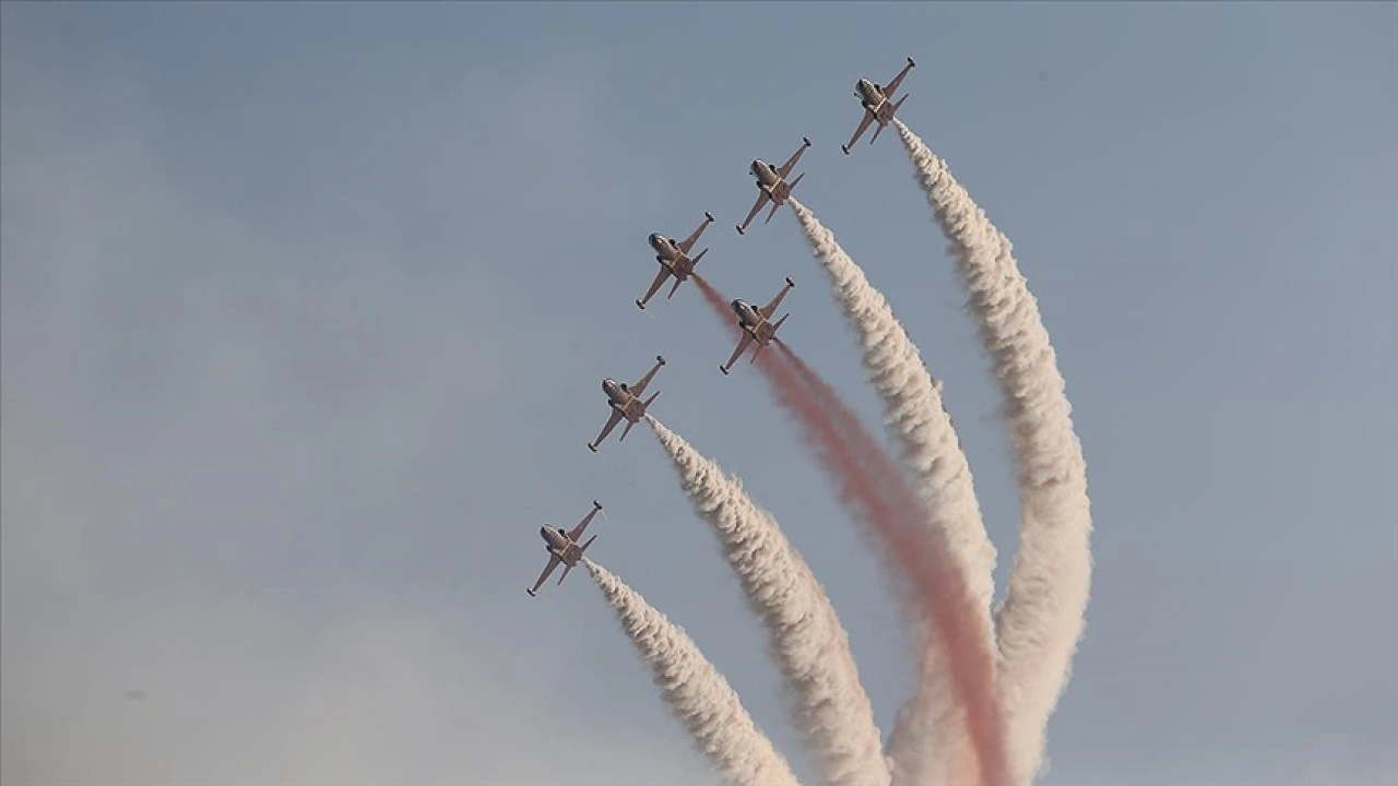 Türk Yıldızları, gösteri uçuşunda yaptığı akrobatik hareketlerle izleyenlere unutulmaz anlar yaşattı.