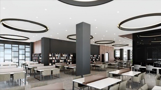 Çelik konstrüksiyondan yapılacak iki katlı kütüphanede, çalışma alanları, atölyeler, kafeterya ve etkinlik alanları bulunacak.