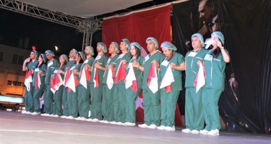 Bu yıl 10'uncusu düzenlen, Uluslararası Marmaris Halk Dansları Festivali 9 farklı ülkeden 800 dansçının katılımıyla devam ediyor. Festivale damga vuran ekip ise Samandağ Devlet Hastanesi halk dansları ekibi oldu. Tamamı hastanede görevli olan doktor, hemşire, sağlık teknisyeni, sağlık teknikeri, güvenlik görevlilerinden oluşan 20 kişilik ekip ameliyathane kostümüyle sahneye çıktı. Hatay yöresine ait oyunları sergileyen ekip izleyicilerden büyük alkış aldı. Samandağ Halk Eğitim Merkezi halk oyunları öğretmeni Nesrin Karasu çalışmaları hakkında bilgi verdi. Türkiye'de ameliyathane kostümüyle sahne alan ilk ekip olduklarını belirten Karasu, “Nisan ayında Samandağ Devlet Hastanesi Başhekimliğinin sağlık çalışanlarının motivasyonlarını artırmaya yönelik bir proje imza atmak için bize başvuruda bulundular. Başvuru sonucunda 23 Nisan etkinliklerine, sağlık çalışanlarından oluşan bir ekip kazandırdık. Bu çalışmanın ardından, Uluslararası Marmaris Halk Dansları Festivali'ne bir davet aldık. Hatay yöresine ait oyunları sergiliyoruz. Normalde yöresel kıyafetlerimiz giymemiz gerekirken, Samandağ Devlet Hastanesi çalışanlarının ameliyathane kostümüyle çıkmasını daha uygun gördük. Gösterinin projemize uygun olması için bugünkü gösterimizi ameliyathane kostümleriyle sergiledik. Çok olumlu tepkiler aldık, çok ilgi gördük. Türkiye'de Hatay'da ilk defa böyle bir çalışma gerçekleşti. Bu proje ile sağlık çalışanlarımızın motivasyonunun da çok ciddi anlamda artığını gördük.” dedi.