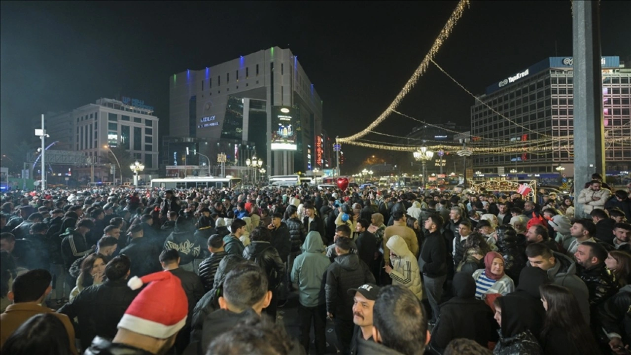 15 Temmuz Kızılay Milli İrade Meydanı ve işlek yerlerde kalabalık oluşturan Ankaralılar, soğuk havaya rağmen saatler 00.00'ı gösterdiğinde 2025'e coşkuyla "merhaba" dedi.