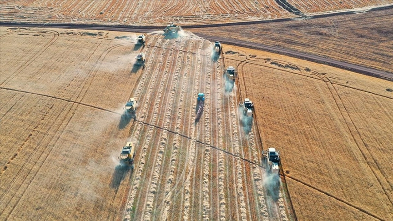 "Hububat deposu" olarak bilinen dev işletmede mayıs ayı sonunda başlayan buğday hasadı, 184 biçerdöver, 128 kamyon ve 1200 işçinin katkısıyla sürüyor.