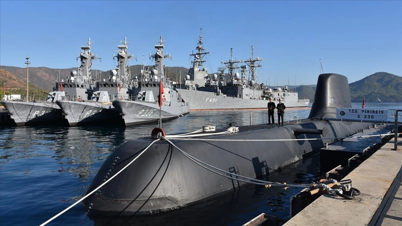 Deniz Kuvvetleri Komutanlığınca yapılan tatbikat kapsamında gözlemcilere ve basın mensuplarına Muğla'nın Marmaris ilçesindeki Aksaz Deniz Üssü iskelesinde brifing verildi.