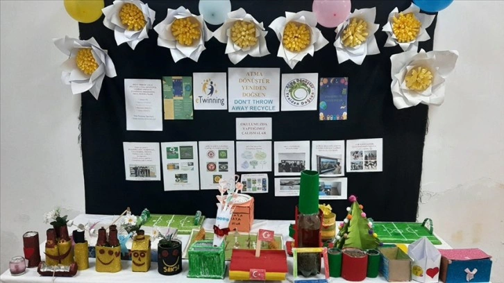 Türkiye ve Litvanya'dan 11 okulun ortaklaşa yürüttüğü "Atma Dönüştür Yeniden Doğsun" isimli proje kapsamında öğrenciler, atık malzemelerden çeşitli ürünler tasarladı.