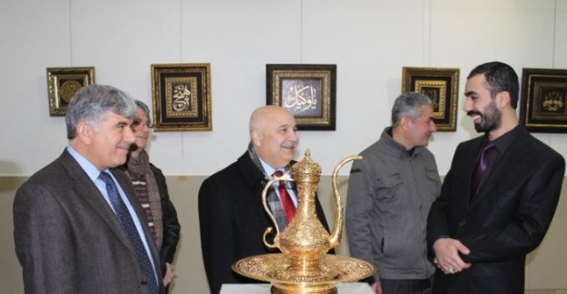 Adıyaman Üniversitesi İslam Sanatları Topluluğu organizesiyle Araştırma Görevlisi Ebubekir İnan ve Kalemkar İsmail Bülbül tarafından hazırlanan Bakır İşleme, Hüsn-i Hat ve Tombak sergisi, üniversite binası Mediko Sosyal Binası Sanat Galerisi’nde ziyaretçiye açıldı. 40 adet tombak eseri, 33 adet hüsn-i hat eserin yer aldığı serginin açılışı büyük ilgi gördü. Birbirinden güzel ve işçilik isteyen eserler büyük beğeni topladı. Beş gün boyunca açık olacak sergideki birbirinden kıymetli eserler, sergi sonrasında satışa sunulacak. Serginin açılışına Adıyaman Üniversitesi Rektörü Prof. Dr. Mustafa Talha Gönüllü, Adıyaman Milli Eğitim Müdürü Seyfi Özkan, Rektör Yardımcıları Prof. Dr. Seyit Temir, Prof. Dr. Hasan Solmaz, Prof. Dr. Ali Aydın, Eğitimci Yazar Ebubekir Aytekin, Güzel Sanatlar Fakültesi Dekanı Prof. Kadir Karkın, Sosyal Bilimler Enstitüsü Müdürü Doç. Dr. İbrahim Halil Tuğluk, akademik ve idari personelin yanı sıra öğrenciler katıldı.