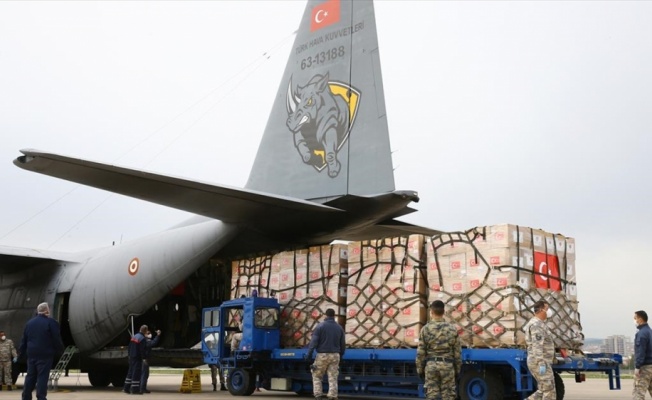 Milli Savunma ve Sağlık bakanlıklarınca hazırlanan malzemeler, Etimesgut Askeri Havaalanı'nda C-130 tipi nakliye uçağına yüklendi.