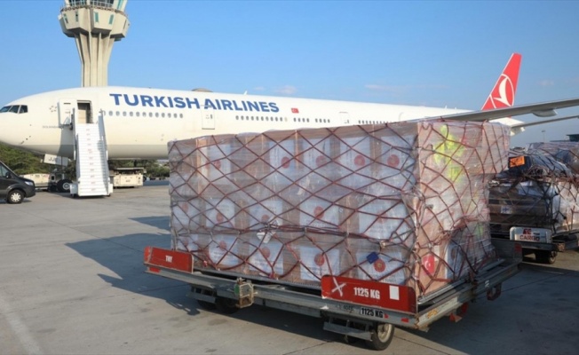 Yeni tip koronavirüsle (Kovid-19) mücadelede kullanılmak üzere hazırlanan malzemeler uçakla Ukrayna'ya gönderildi.