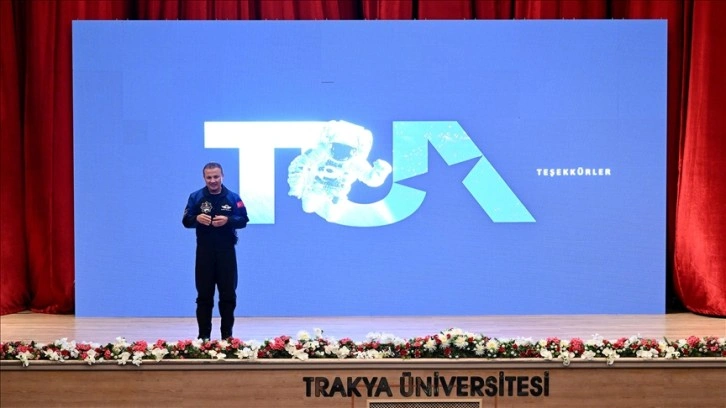 Gezeravcı, Trakya Üniversitesi Balkan Kongre Merkezi'nde Sanayi ve Teknoloji Bakanı Mehmet Fatih Kacır'ın katılımıyla düzenlenen Gençlik Buluşması'nda Türkiye'nin insanlı ilk uzay misyonunu anlattı.