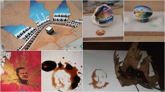 Gaziantep'te yaşayan muhasebe ve finans öğretmeni Yusuf Çakmak, kuş tüyünden fasulyeye, kabak çekirdeğinden ağaç yaprağına kadar her türlü nesneyi, manzara resimleriyle güzelleştiriyor.