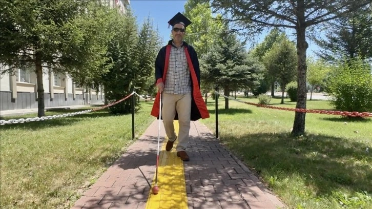 Kayseri'de oturan 45 yaşındaki Emek Çağatay Aksöz, 20 yıl önce Erciyes Üniversitesi Fizik Bölümü'nden mezun olduktan sonra görme yetisini kaybetmesine rağmen 2 üniversite daha bitirdi.