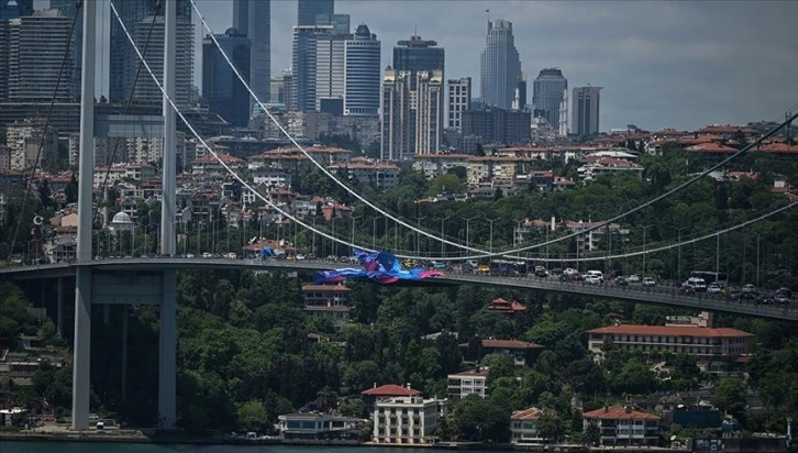 Köprüde dalgalanan bayraklar, vatandaşların ilgisini çekti.