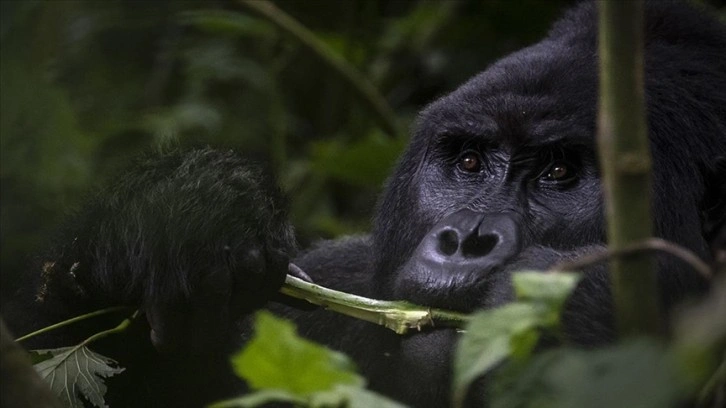 AA muhabiri, Uganda'daki Bwindi Geçilmez Milli Parkı'nda koruma altına alınan baba, 3 eş ve çocuklardan oluşan 17 üyeli goril ailesi "Posho"ları görüntüledi.